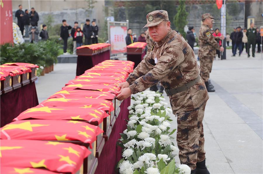 60名散居烈士遺骸集中遷移安葬入園。