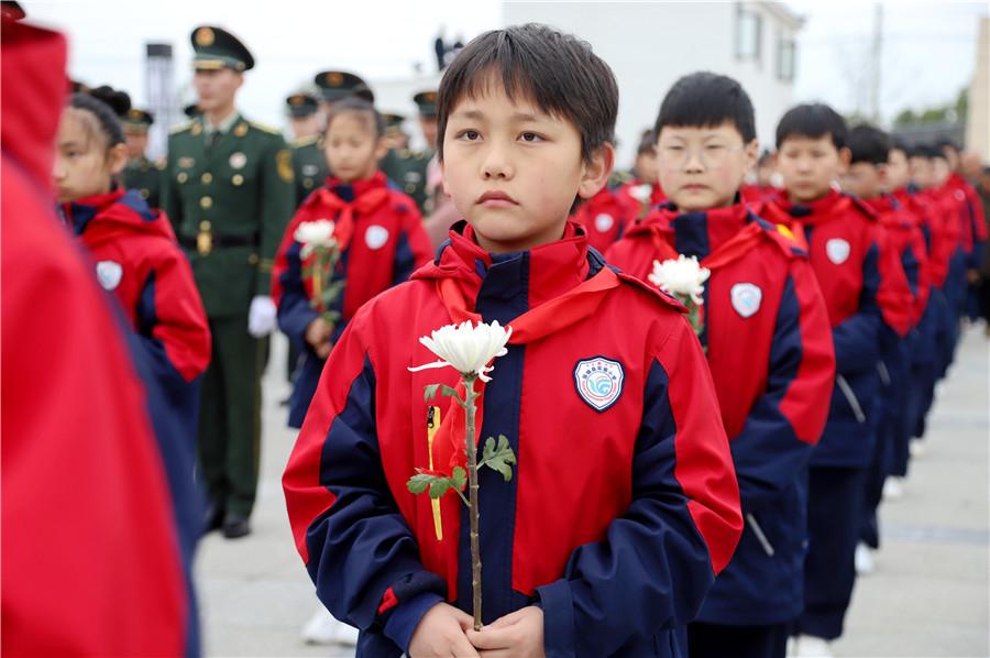 安葬儀式現(xiàn)場奏唱國歌,莊嚴(yán)肅穆,隨后逐一介紹集中安葬的60名烈士生平。全體人員脫帽,向革命烈士紀(jì)念碑和革命烈士默哀三分鐘。固鎮(zhèn)縣委相關(guān)負(fù)責(zé)同志宣讀祭文,現(xiàn)場三鞠躬后,人武專干、烈士親屬將烈士骨灰護(hù)送至墓穴安葬。參加活動人員依次向烈士獻(xiàn)花。