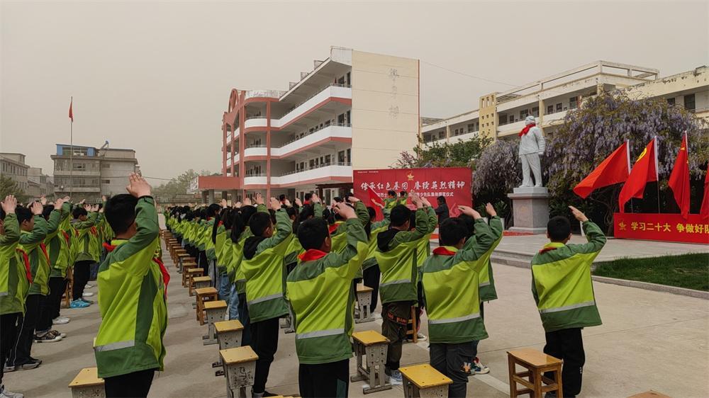 隨后,少先隊員代表集體朗讀《紅色的中國》:“看吶,那冉冉升起的五星紅旗,是最艷麗的紅,紅得堅強(qiáng),紅得剛烈,紅得熱情,世界的東方,飄揚著一抹紅,紅紅火火大中國……”