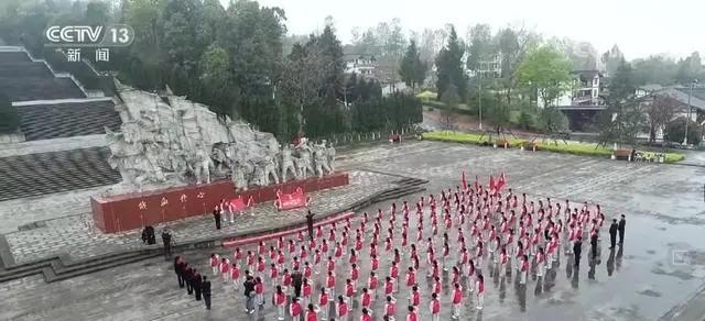 在川陜革命根據(jù)地紅軍烈士陵園,少先隊(duì)員們?yōu)闊o(wú)名烈士敬獻(xiàn)紅領(lǐng)巾,并用為無(wú)名墓碑上的紅星描紅補(bǔ)色的方式,寄托對(duì)革命先烈的哀思。