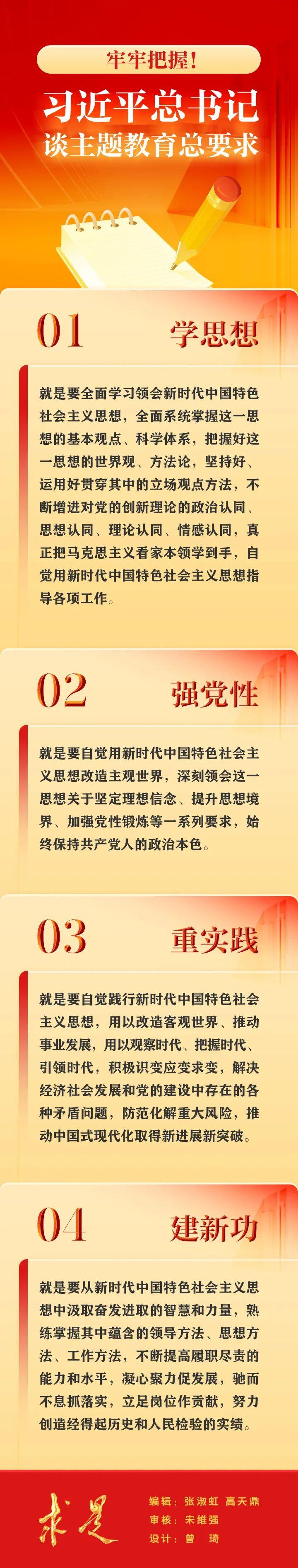 在2023年第9期《求是》雜志刊發(fā)的習(xí)近平總書記重要文章《在學(xué)習(xí)貫徹習(xí)近平新時代中國特色社會主義思想主題教育工作會議上的講話》中,總書記強調(diào)要“牢牢把握總要求”,“把這一總要求貫穿這次主題教育全過程”。