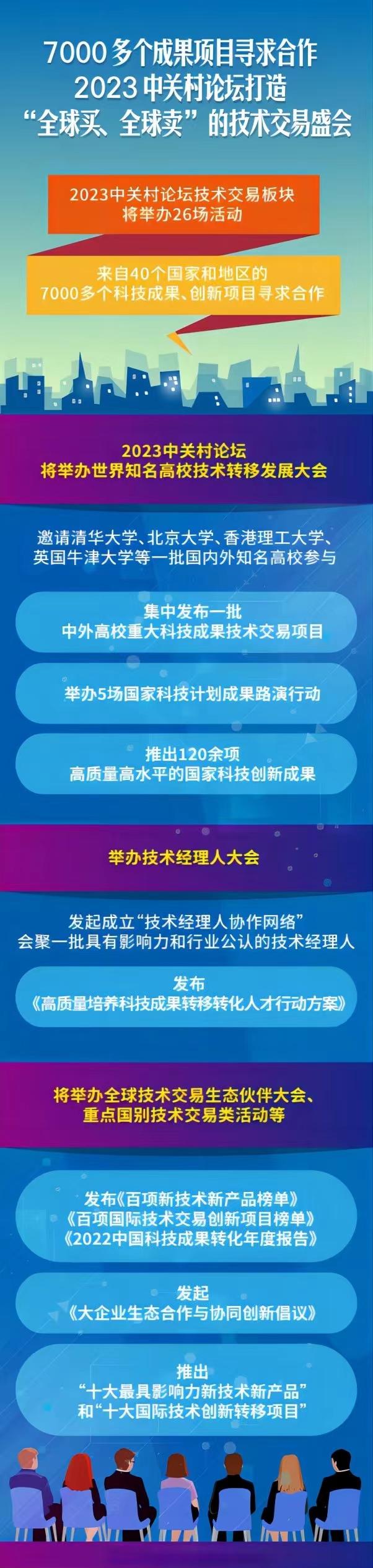 北京市副市長于英杰在15日舉行的國新辦新聞發(fā)布會上說,2023中關村論壇技術(shù)交易板塊將舉辦26場活動,來自40個國家和地區(qū)的7000多個科技成果、創(chuàng)新項目尋求合作。