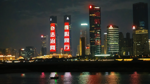 法治之光照亮美好生活。夜晚的南昌,一場大型燈光秀上演,在贛江兩岸標(biāo)志性建筑戶外LED大屏幕墻上,滾動(dòng)播放著網(wǎng)絡(luò)文明、網(wǎng)絡(luò)法治等主題宣傳標(biāo)語、動(dòng)圖、微視頻等,“e法治網(wǎng) 同心同行”的宣傳標(biāo)語,更是吸引了眾多市民駐足觀看。
