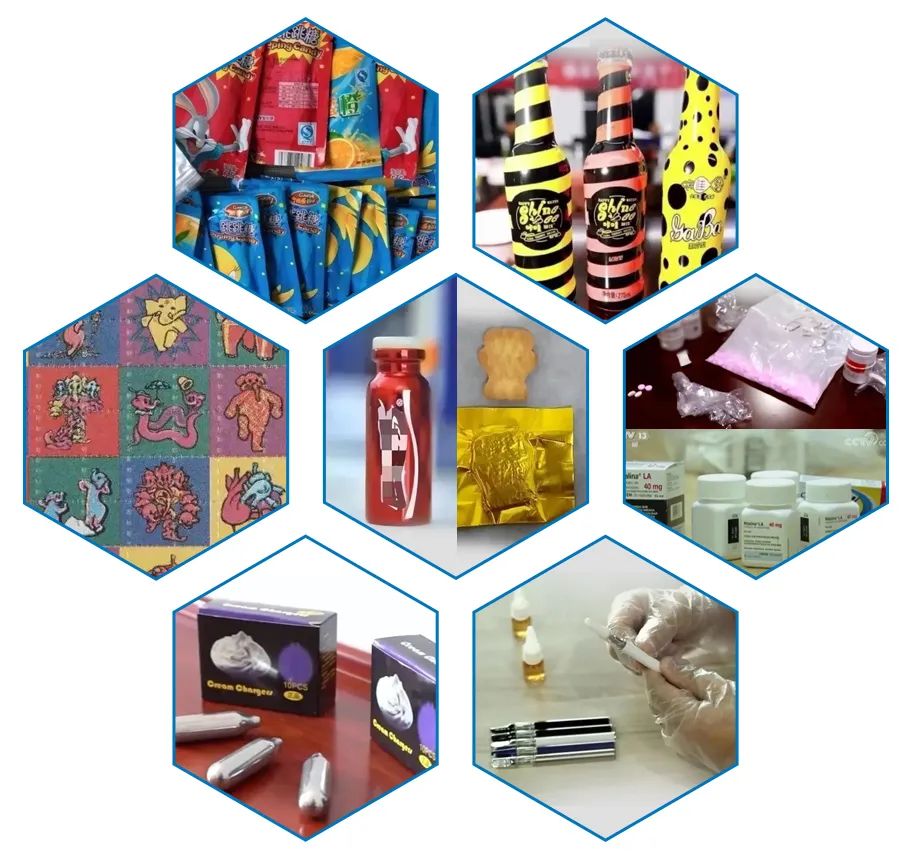 不過(guò),在長(zhǎng)期與新型毒品犯罪作斗爭(zhēng)的過(guò)程中,檢察官還是總結(jié)了新型毒品的鮮明特征。陳煒瑩說(shuō)道,“一般外形新穎時(shí)尚,包裝粗糙,屬于‘三無(wú)產(chǎn)品’,并且交易隱蔽,多通過(guò)‘互聯(lián)網(wǎng)+物流寄遞+線上支付’這種非接觸的方式販運(yùn),使用場(chǎng)景通常是夜店、酒吧等娛樂(lè)場(chǎng)所。”