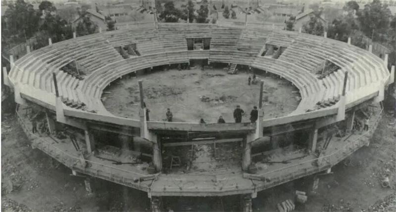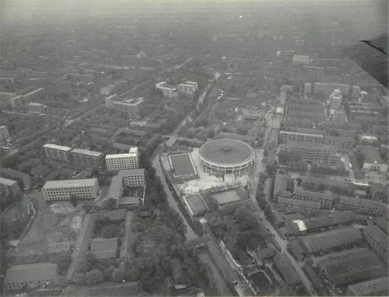 20世紀(jì)80年代初城北體育館封頂后航拍圖