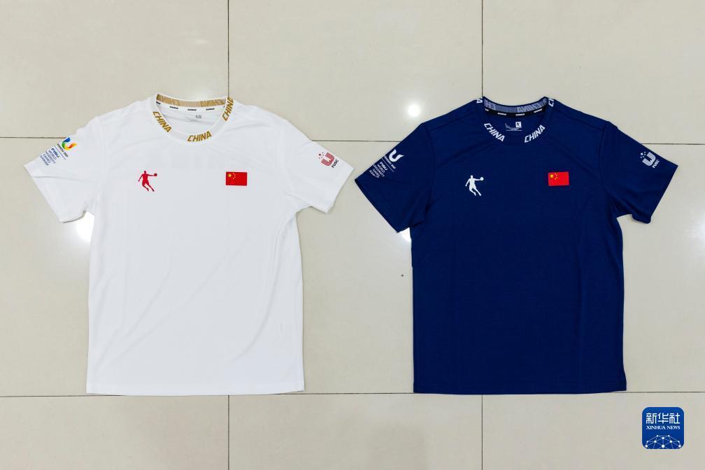 這是7月24日拍攝的第31屆世界大學(xué)生夏季運動會中國代表團成員配發(fā)裝備中的短T恤衫。新華社記者 沈伯韓 攝