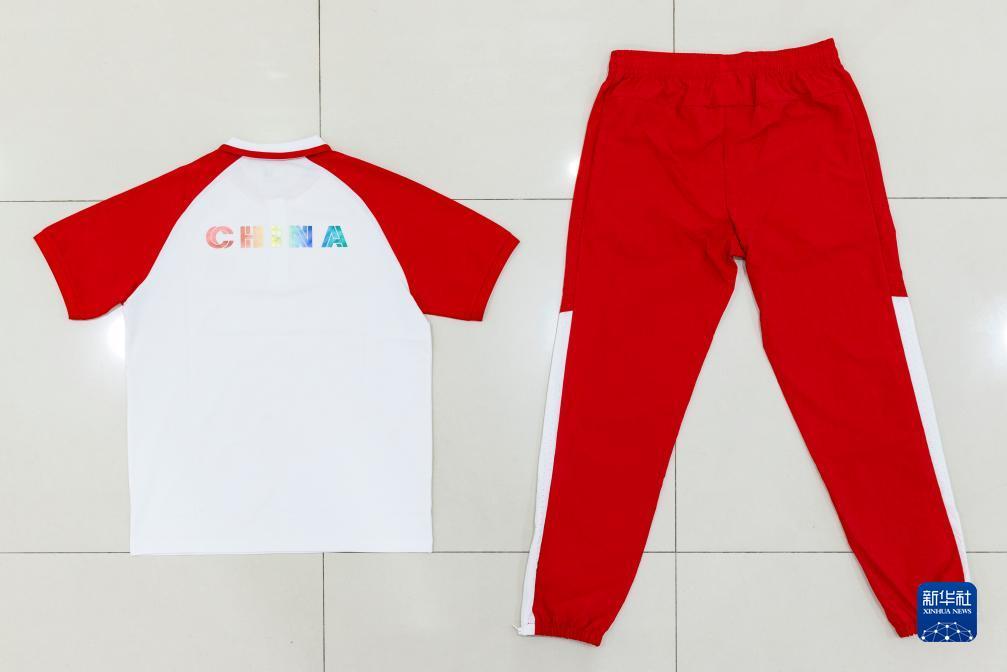 這是7月24日拍攝的第31屆世界大學(xué)生夏季運動會中國代表團成員配發(fā)裝備中的POLO短T恤衫和長褲。新華社記者 沈伯韓 攝