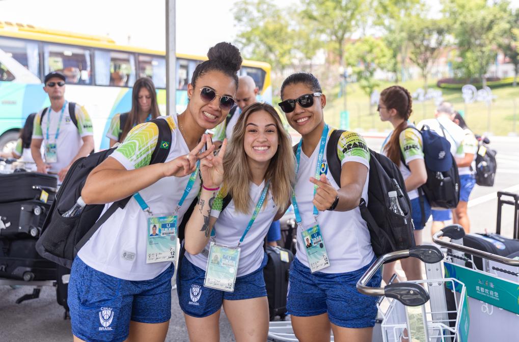 ↑7月22日,巴西代表團成員抵達成都大運村后合影。