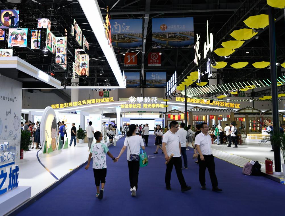 這是6月29日拍攝的第十九屆中國(guó)西部國(guó)際博覽會(huì)四川“五區(qū)共興”館。新華社記者 胥冰潔 攝