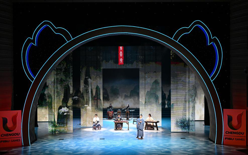 8月1日,“大音希聲”古琴音樂晚會在成都大運村藝術(shù)中心大劇場舉行,來自成都古琴文化學會和梓又雅樂團的演奏者為觀眾帶來精彩表演。本場活動是在大運村舉辦的“Be Together”主題系列晚會之一。新華社記者 蔡湘鑫 攝