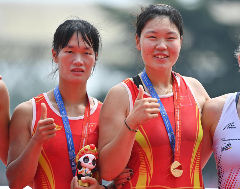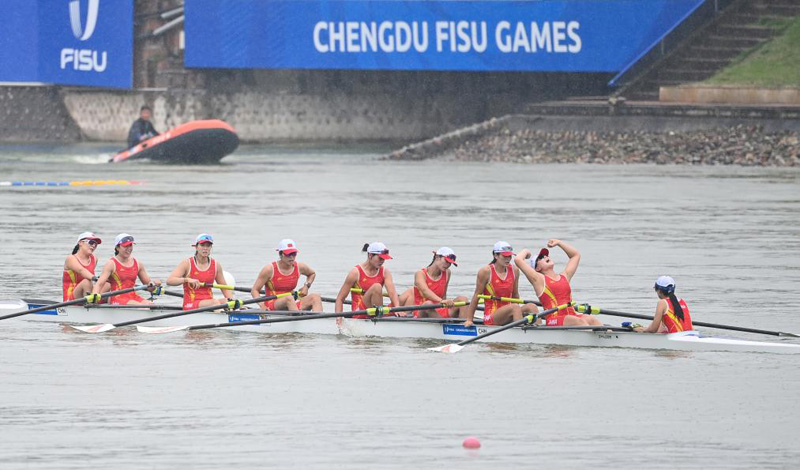在女子八人單槳有舵手決賽中,中國女將們“一騎絕塵”,以6分25秒03的成績獲得金牌。來自江西師范大學(xué)的吳伊慧奪冠后說:“賽艇項(xiàng)目比較冷門,希望通過大運(yùn)會(huì)讓大家更多地了解賽艇的魅力。”
