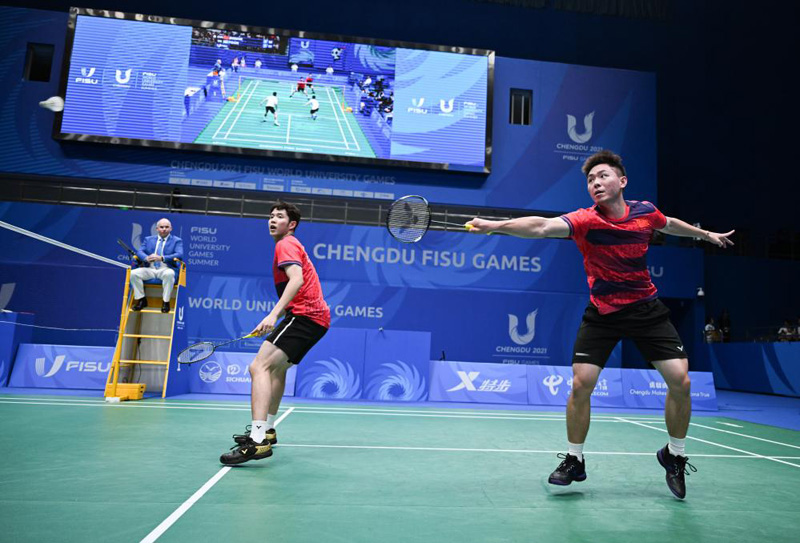 新華社成都8月6日電(記者丁文嫻、谷訓(xùn)、何磊靜)大運會羽毛球賽場6日展開單項賽的四分之一決賽和半決賽爭奪,中國隊選手在四個單項闖入決賽,其中男雙和女雙項目實現(xiàn)會師。