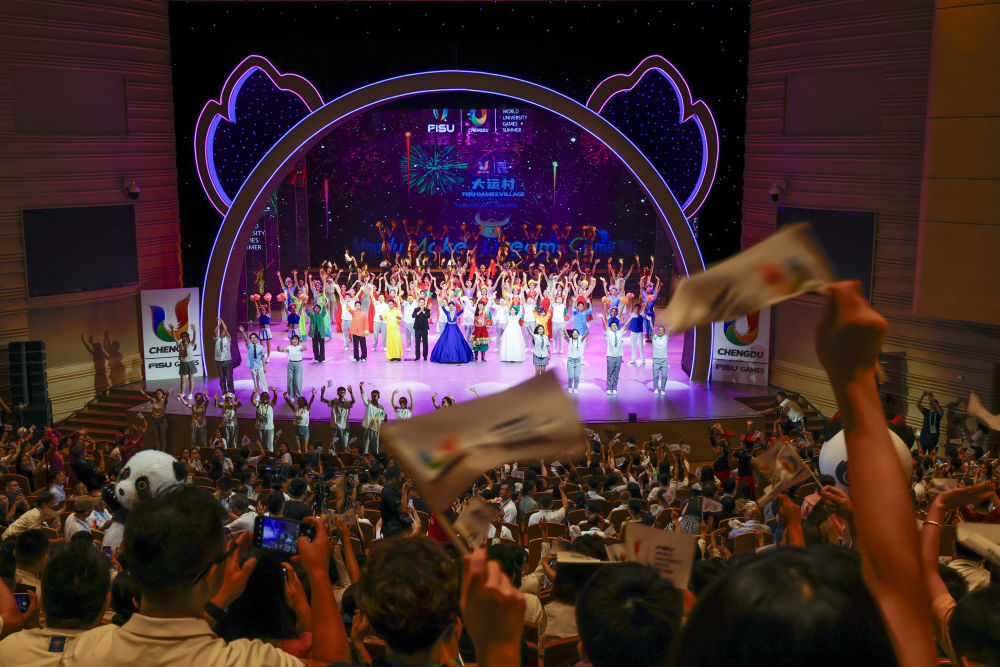 成都大運村以“建改結(jié)合”方式全面融入成都大學(xué),該校校園在大運會期間成為來自世界各地學(xué)生運動員的家。作為此次系列主題晚會的最后一場,《成就夢想》也是唯一一個全部由成都大學(xué)師生演出的主題晚會。