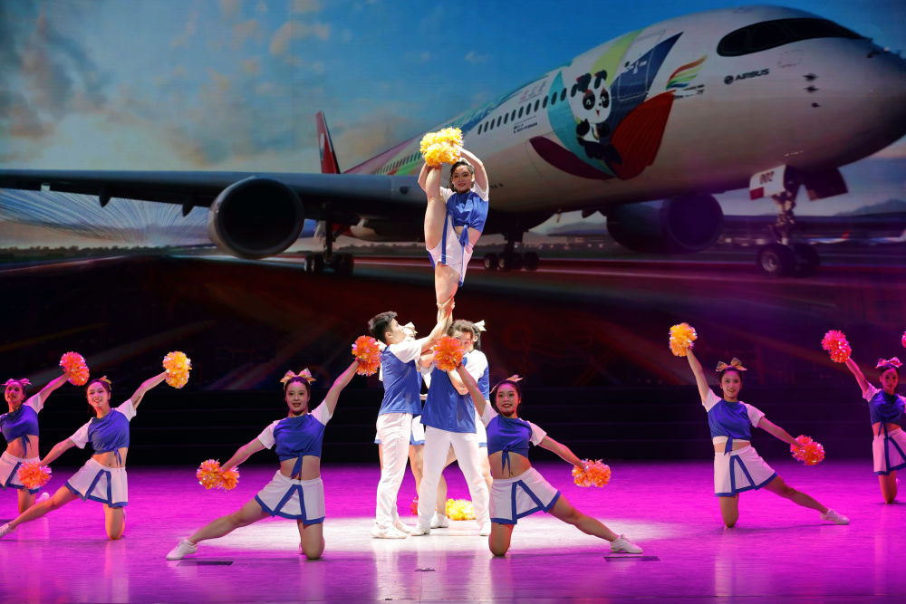 8月7日,成都大學(xué)的學(xué)生表演《多彩瞬間》。新華社記者 沈伯韓 攝