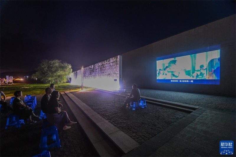 8月19日,游客在三都漁村觀看露天電影。