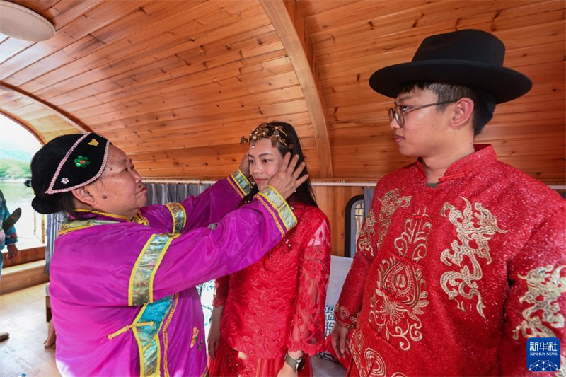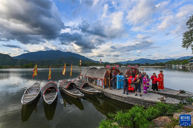 8月19日拍攝的三都鎮(zhèn)三都漁村水上婚禮傳統(tǒng)民俗表演。