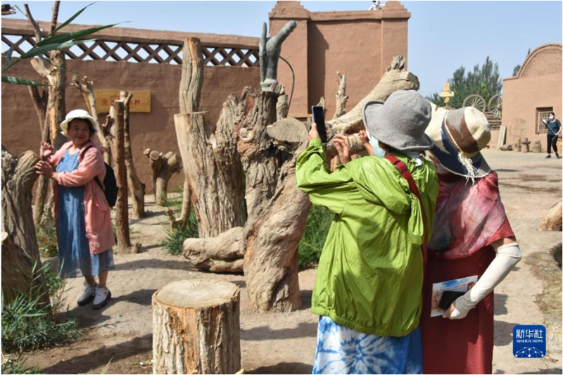 8月30日,游客在位于新疆吐魯番市的坎兒井樂園景區(qū)拍照。