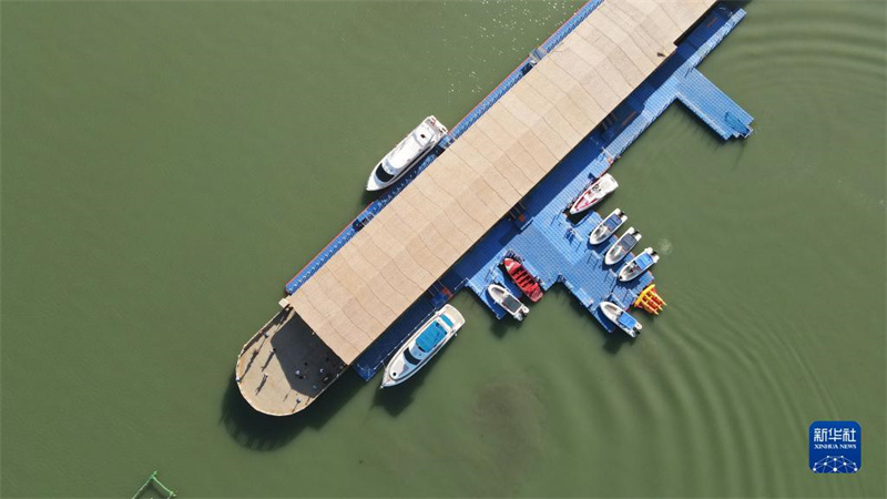 8月31日,游客在新疆博斯騰湖大河口景區(qū)游玩(無人機(jī)照片)。