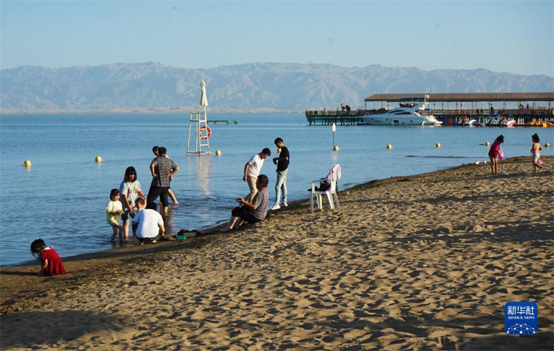 8月31日,游客在新疆博斯騰湖大河口景區(qū)游玩。