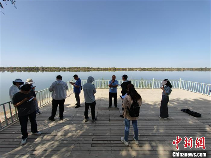 9月1日,“四季看新疆第二季”之“沿著河湖看新疆”主題采訪活動采訪團(tuán)走進(jìn)巴音郭楞蒙古自治州尉犁縣羅布淖爾國家濕地公園進(jìn)行采訪。(中新網(wǎng)記者 王小軍 攝)