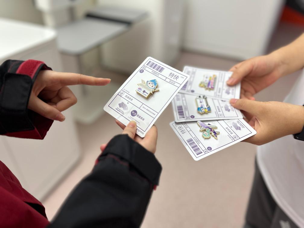 記者了解到,亞運(yùn)徽章的獲取方式有亞運(yùn)會(huì)特許商店購(gòu)買、展區(qū)領(lǐng)取以及自發(fā)交換等。有趣的是,自發(fā)交換讓亞運(yùn)徽章儼然成了一種“社交貨幣”,流通方式則是不少人通過在展區(qū)領(lǐng)取或購(gòu)買徽章后,再與對(duì)方免費(fèi)交換,即使兩個(gè)人相互之間不認(rèn)識(shí)、來(lái)自不同國(guó)家和地區(qū)。“換徽章嗎?”成為很多人的亞運(yùn)會(huì)社交開場(chǎng)白。