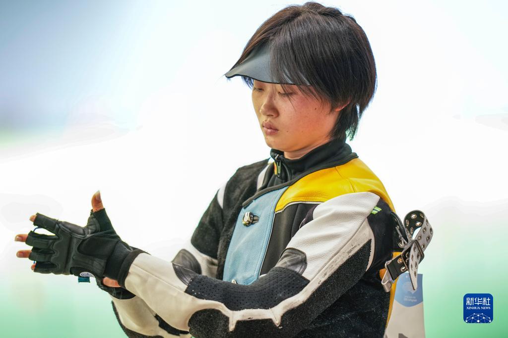 9月27日,印度隊(duì)選手希芙特·考爾·薩姆拉在比賽中調(diào)整槍械。