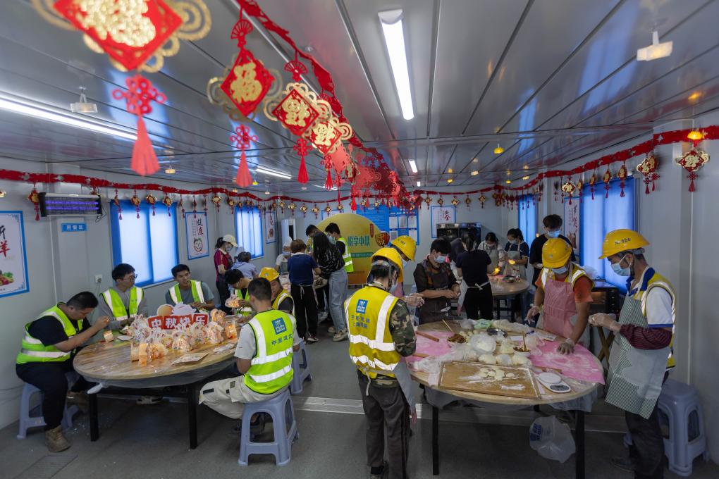 9月26日在項(xiàng)目工友服務(wù)站拍攝的迎中秋活動(dòng)現(xiàn)場。