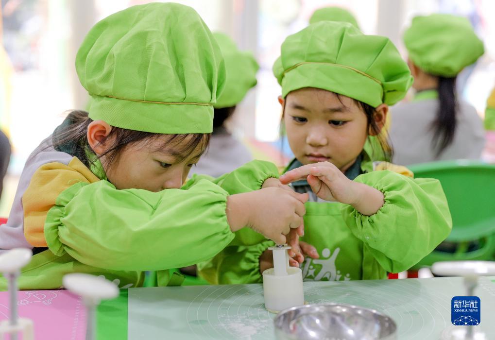 9月26日,江蘇省南京市一家幼兒園的小朋友在學習制作冰皮月餅。