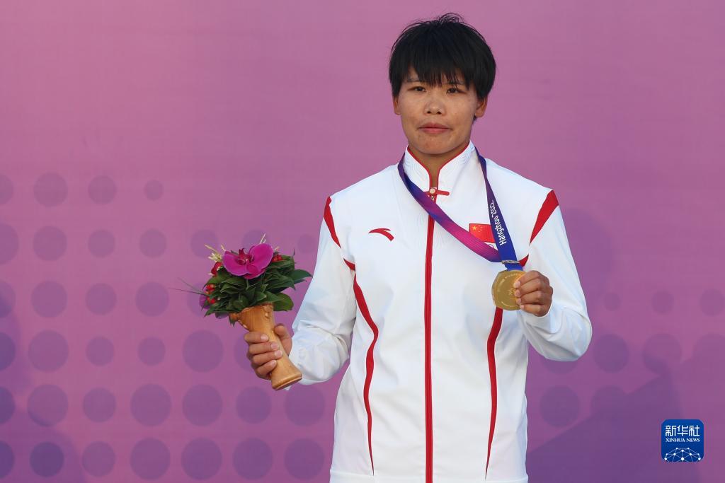 9月27日,冠軍中國(guó)選手黃先婷在頒獎(jiǎng)儀式上。