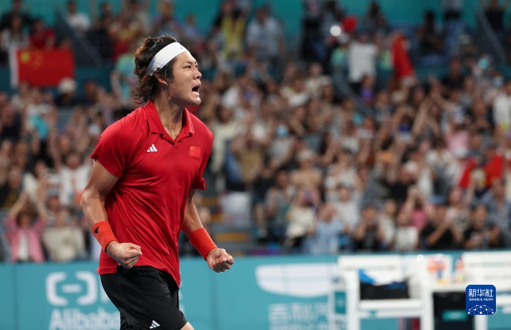 當日,在浙江杭州奧體中心網(wǎng)球中心進行的杭州亞運會網(wǎng)球男子單打決賽中,中國選手張之臻以2比0戰(zhàn)勝日本選手綿貫陽介,奪得冠軍。