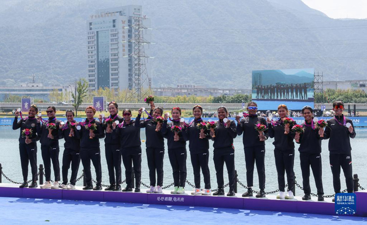 當(dāng)日,在浙江溫州龍舟運(yùn)動(dòng)中心進(jìn)行的杭州亞運(yùn)會龍舟項(xiàng)目女子組12人龍舟200米直道競速賽中,中國隊(duì)以53秒804的成績獲得冠軍。印度尼西亞隊(duì)獲得亞軍,泰國隊(duì)獲得季軍。
