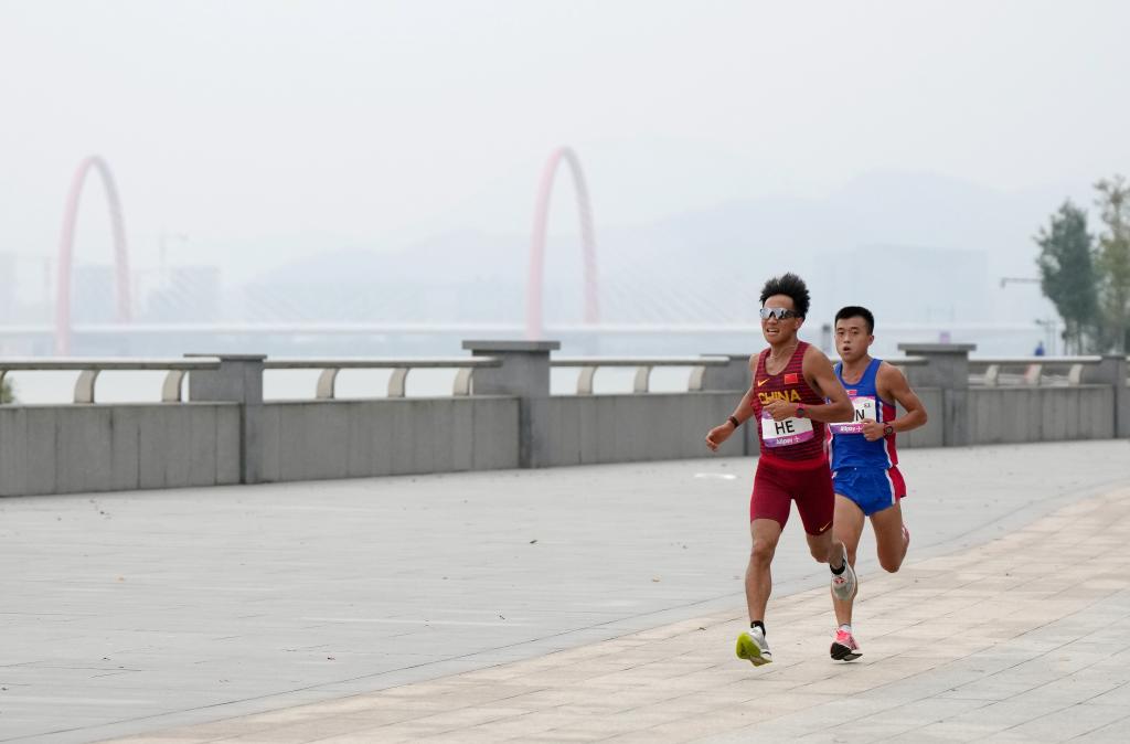 當(dāng)天上午7時(shí),男子馬拉松比賽率先鳴槍。今年創(chuàng)造了全國紀(jì)錄的何杰攜手隊(duì)友楊紹輝出戰(zhàn),被寄予厚望。比賽30公里后,何杰、楊紹輝、朝鮮選手韓日龍等7人形成第一集團(tuán)。38公里后,何杰和韓日龍甩開大部隊(duì),展開了激烈競逐。到40公里時(shí),何杰發(fā)力,開始獨(dú)自領(lǐng)跑。最終,他以2小時(shí)13分02秒的成績奪冠,韓日龍、楊紹輝分獲亞軍和季軍。