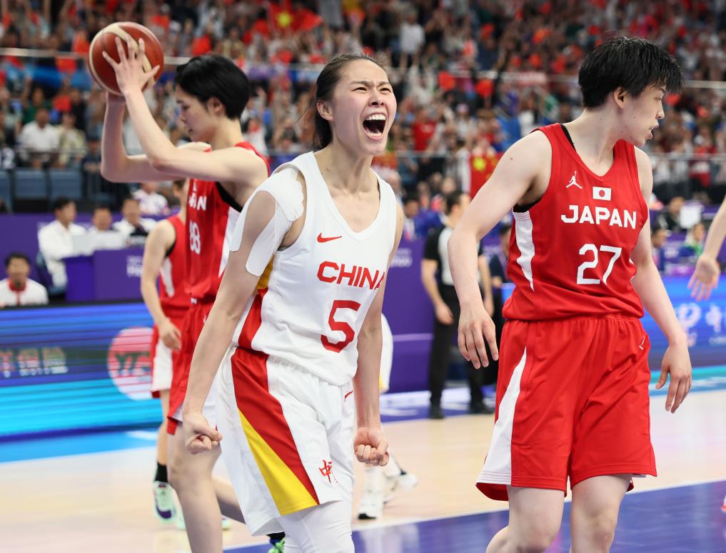 4.8秒時(shí)間里,籃球經(jīng)兩次傳導(dǎo)、三次觸地、一次碰板后鉆進(jìn)籃筐,點(diǎn)亮了中國(guó)女籃主場(chǎng)衛(wèi)冕的榮光。