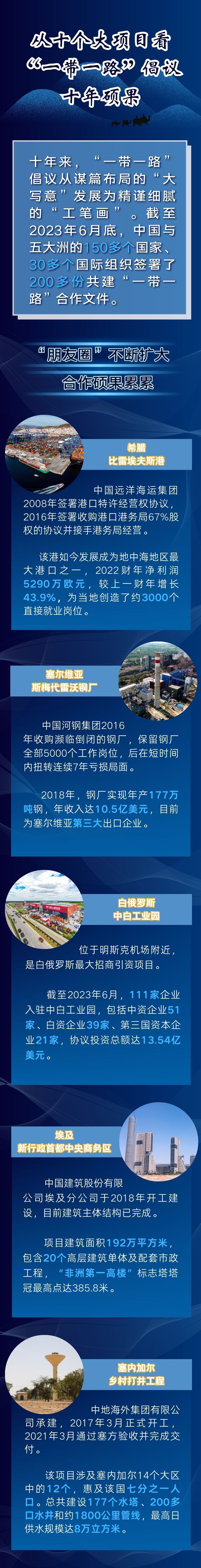 今年是中國提出共建“一帶一路”倡議十周年。十年來,“一帶一路”倡議從謀篇布局的“大寫意”發(fā)展為精謹(jǐn)細(xì)膩的“工筆畫”。截至2023年6月底,中國與五大洲的150多個(gè)國家、30多個(gè)國際組織簽署了200多份共建“一帶一路”合作文件,“朋友圈”不斷擴(kuò)大,合作碩果累累。