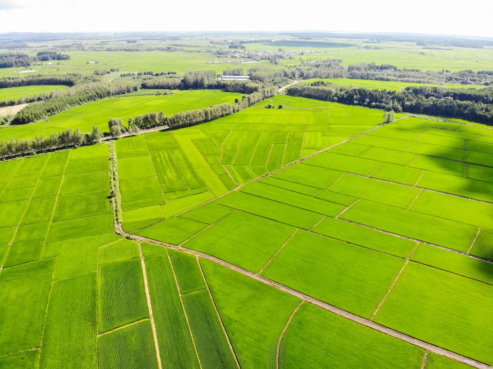 2022年7月,黑龍江省鐵力市山泉農(nóng)機(jī)農(nóng)民專業(yè)合作社高標(biāo)準(zhǔn)有機(jī)稻田(無(wú)人機(jī)照片)。新華社記者王松 攝