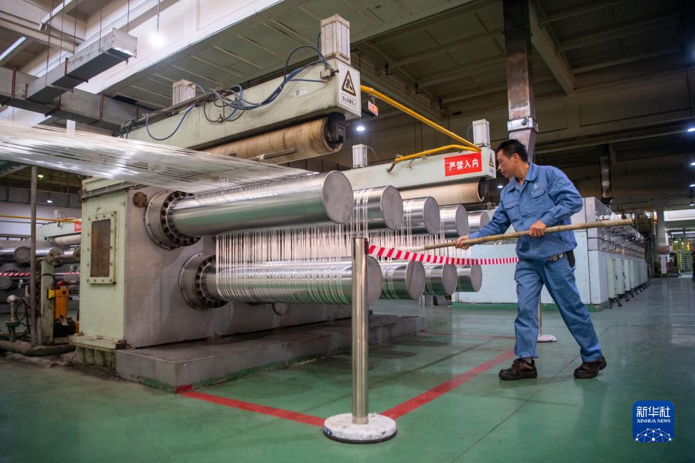 10月17日,在中國石化集團(tuán)重慶川維化工有限公司,工作人員在生產(chǎn)線上工作。