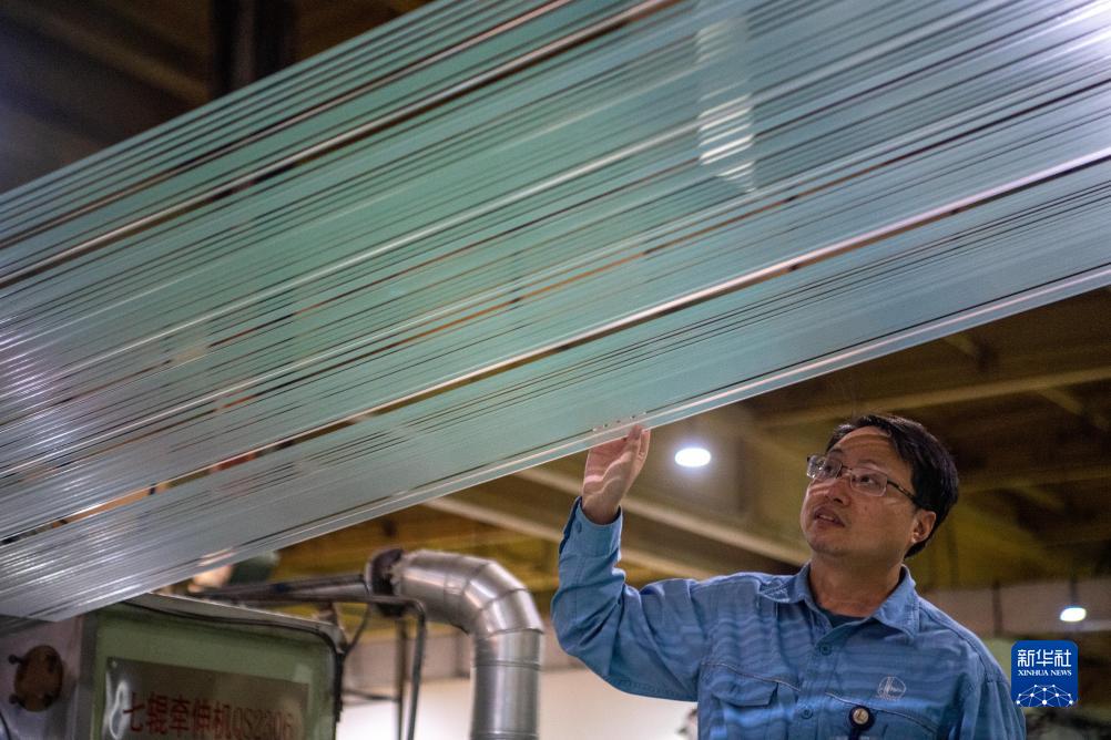 10月17日,在中國石化集團重慶川維化工有限公司,工作人員在生產(chǎn)線上檢查化工產(chǎn)品生產(chǎn)情況。
