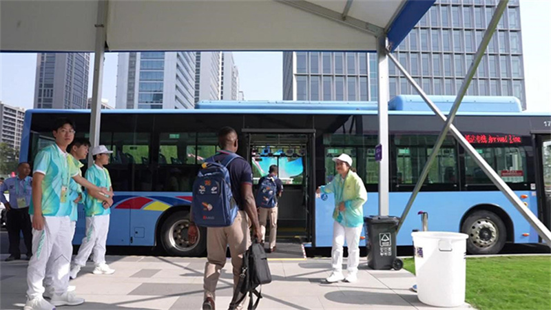 在亞殘運(yùn)村,運(yùn)動員們交通出行相當(dāng)便利,無論是小型接駁車還是接駁巴士,每一輛車都配備了齊全的助殘?jiān)O(shè)備,輪椅可以輕松上下。“村”內(nèi)站點(diǎn)安排合理,從居住區(qū)到運(yùn)動員餐廳,從歡迎中心到綜合門診部,“村”內(nèi)交通路線四通八達(dá),班次密集,乘坐方便,駕駛員們的服務(wù)更是讓人豎起大拇指。