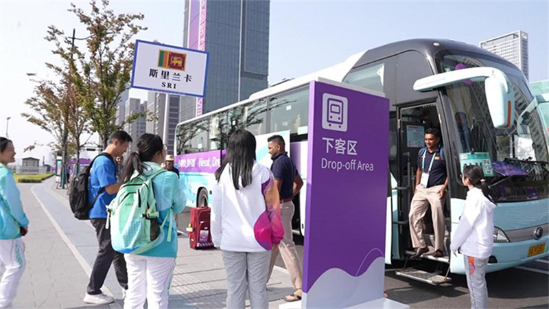 今天(10月17日),當(dāng)斯里蘭卡代表團(tuán)和印度代表團(tuán)的運(yùn)動員們抵達(dá)亞殘運(yùn)村的時(shí)候,歡迎中心里的工作人員和志愿者們都已經(jīng)做好了準(zhǔn)備。從運(yùn)動員們下車的一刻開始,就已經(jīng)“回到了家”。