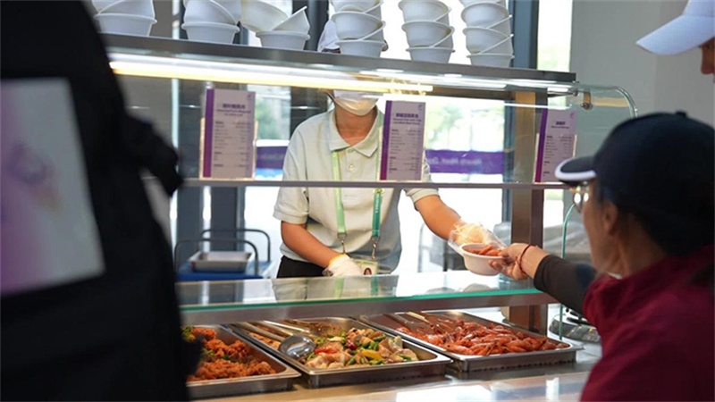 加寬加深的輪椅區(qū)、降低高度的取餐臺、滿員在崗的志愿者和服務(wù)人員……餐廳處處都是暖心細(xì)節(jié)。