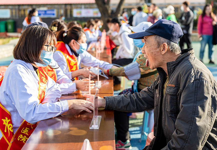 10月18日,呼和浩特市玉泉區(qū)長和廊街道 “健康速遞 情暖重陽”主題活動在菩提塔東社區(qū)舉行?;顒蝇F(xiàn)場,來自內(nèi)蒙古自治區(qū)人民醫(yī)院第三黨總支的醫(yī)療專家為社區(qū)老人進行了健康義診和慢性病防治知識講座?!奥?lián)動藥房”的志愿者還為社區(qū)獨居、空巢老人上門贈送“長者藥箱”,以實際行動弘揚尊老敬老傳統(tǒng)美德。(丁根厚)