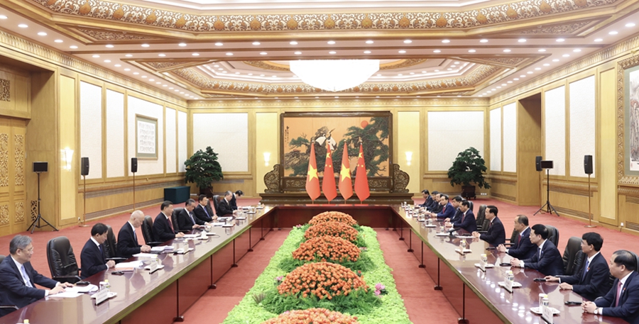 10月20日上午,國(guó)家主席習(xí)近平在北京人民大會(huì)堂會(huì)見來華出席第三屆“一帶一路”國(guó)際合作高峰論壇的越南國(guó)家主席武文賞。