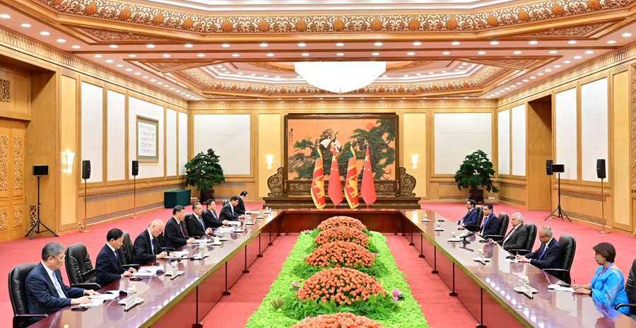 10月20日上午,國(guó)家主席習(xí)近平在北京人民大會(huì)堂會(huì)見(jiàn)來(lái)華出席第三屆“一帶一路”國(guó)際合作高峰論壇的斯里蘭卡總統(tǒng)維克拉馬辛哈。