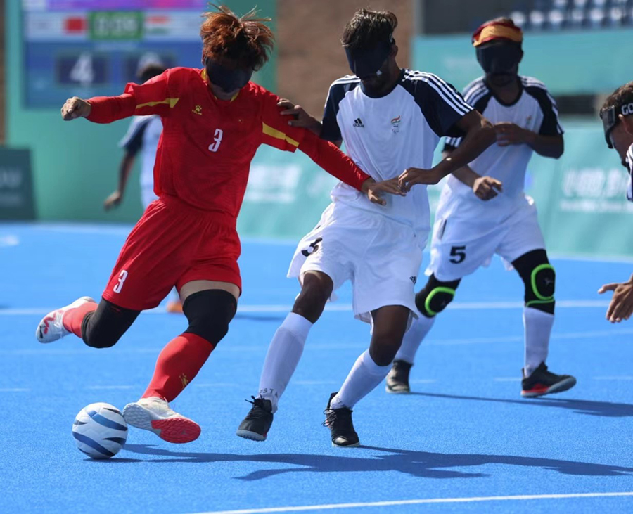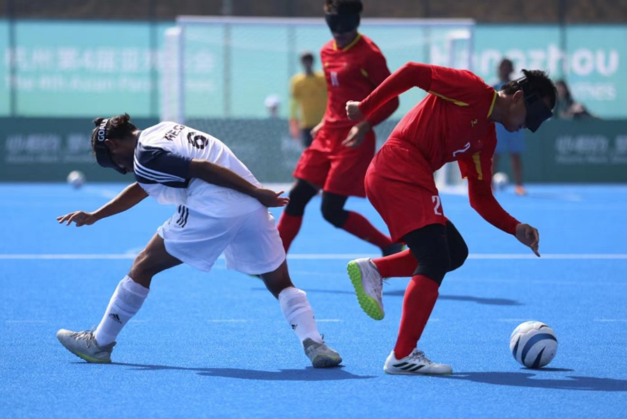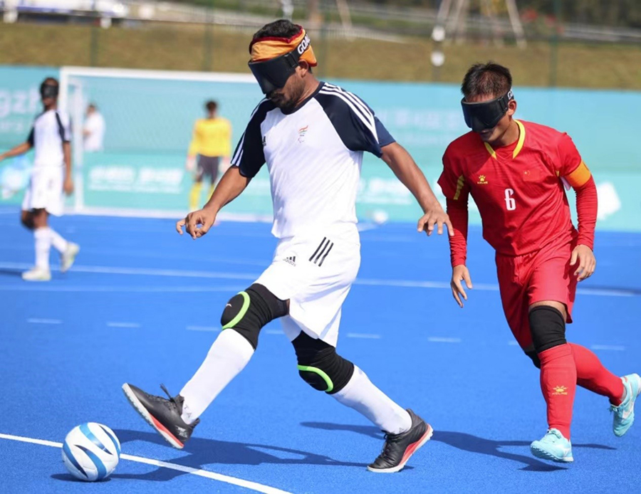 10月23日,杭州亞殘運(yùn)會(huì)盲人足球比賽開(kāi)賽,首場(chǎng)比賽是中國(guó)盲人男子足球隊(duì)對(duì)陣印度隊(duì)。中國(guó)隊(duì)的綜合實(shí)力更勝一籌,發(fā)動(dòng)了多次頗具威脅的進(jìn)攻,最終以4:0戰(zhàn)勝對(duì)手。