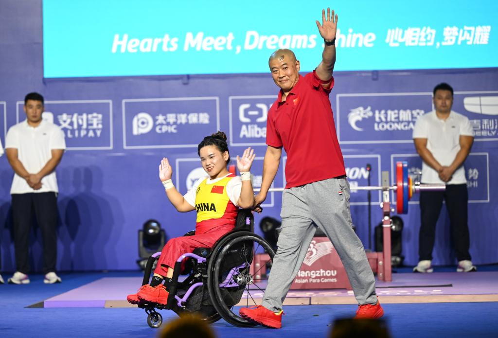 新華社杭州10月23日電(記者許東遠(yuǎn))“雖然已經(jīng)達(dá)到了高峰,但是我還想拿下一個(gè)冠軍,我就想看看自己有多大能量,能持續(xù)(參加)幾屆賽事?!?3日,在杭州亞殘運(yùn)會(huì)舉重項(xiàng)目女子41公斤級(jí)比賽中,中國(guó)選手郭玲玲四次試舉,三次打破世界紀(jì)錄,最終將新的世界紀(jì)錄定格在123公斤。