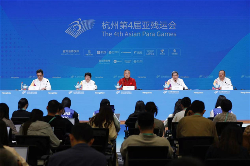 10月24日,杭州亞殘運會賽事與場館運行主題新聞發(fā)布會在主媒體中心舉行。中國殘疾人體育運動管理中心主任、中國代表團副秘書長楊金奎,杭州亞殘運會主新聞發(fā)言人毛根洪,杭州文匯學校草地擲球場新聞發(fā)言人陳萍,臨平體育中心場館群新聞發(fā)言人吳巍峰介紹亞殘運會賽事與場館運行整體情況及亮點,并回應(yīng)媒體關(guān)切,杭州亞殘運會主媒體中心副指揮長楊猛主持會議。