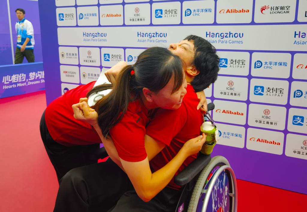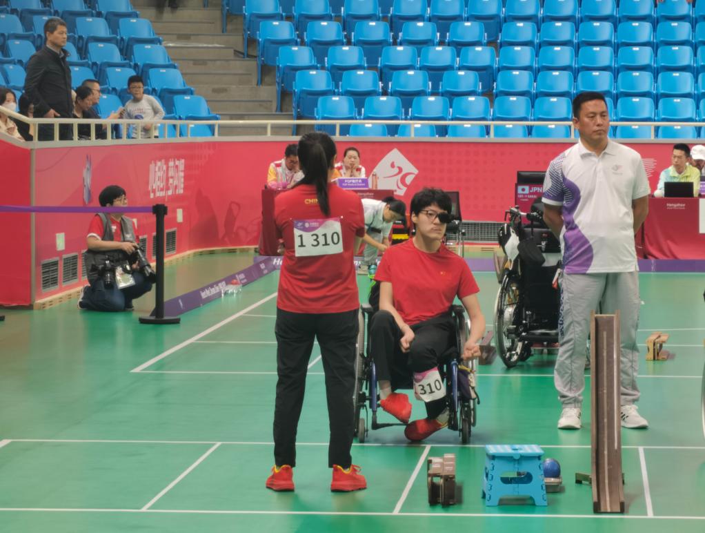 37歲的何麗萍就是其中之一,她是BC3級運動員楊貝貝的競賽輔助人員。在25日的女子個人BC3決賽上,她們獲得了一枚寶貴的金牌。