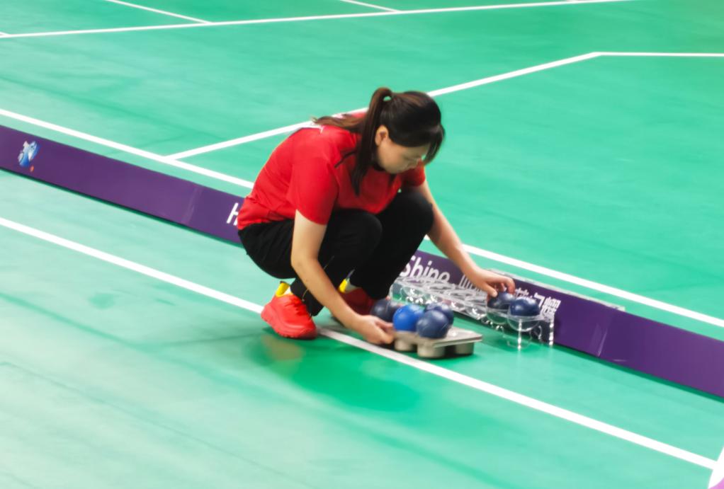 硬地滾球是最具包容性的殘疾人運動之一,專門為腦癱患者、嚴(yán)重軀體功能障礙的運動員而設(shè)立。其根據(jù)運動員殘疾程度分為4個級別,楊貝貝屬于其中較重的級別,無法獨立擲球,因此需要軌道器械和競賽輔助人員的幫助。