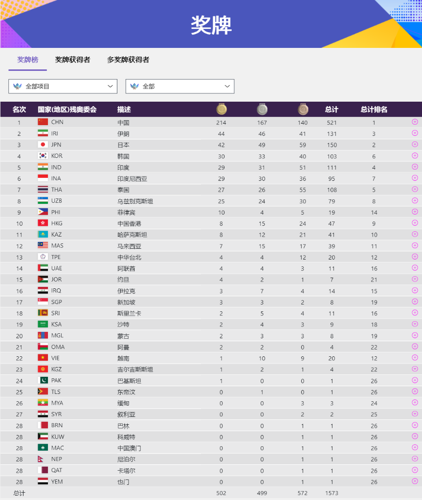 金牌大戶田徑當天共決出15枚金牌,中國隊斬獲其中5枚,以46金43銀33銅的戰(zhàn)績穩(wěn)居首位。伊朗和印度分別以21金和18金排名第二、第三。