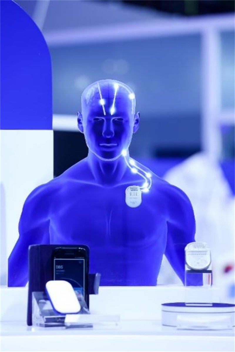 第四屆進(jìn)博會上的PerceptTM PC 植入式腦深部刺激系統(tǒng),目前已完成首批人腦植入手術(shù)。